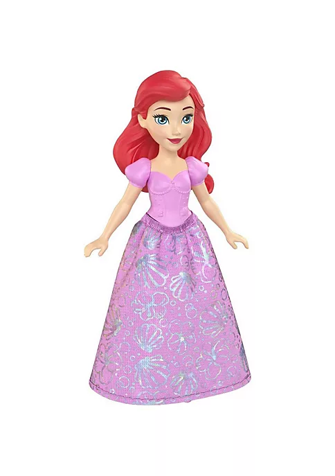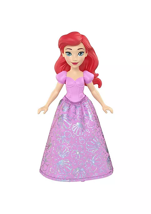 Meet this Ariel doll, inspired by the determined and free-spirited princess from Disney’s The Little Mermaid, in a charming scale with movable joints! This posable small doll sparkles in her signature look, featuring a removable soft skirt with metallic details. Doll cannot stand alone. Colors and decorations may vary.