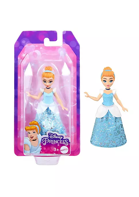 Meet this Cinderella doll, inspired by the courageous and kind princess from the popular Disney movie, in a charming scale with movable joints! This posable small doll sparkles in her signature fashion, featuring a removable soft skirt with peplum and metallic details. Doll is approximately 3 1/2-inches tall. Ages 3 and up.