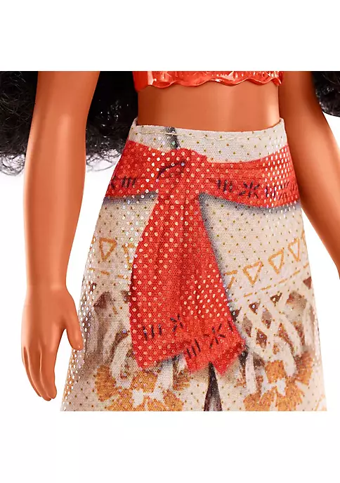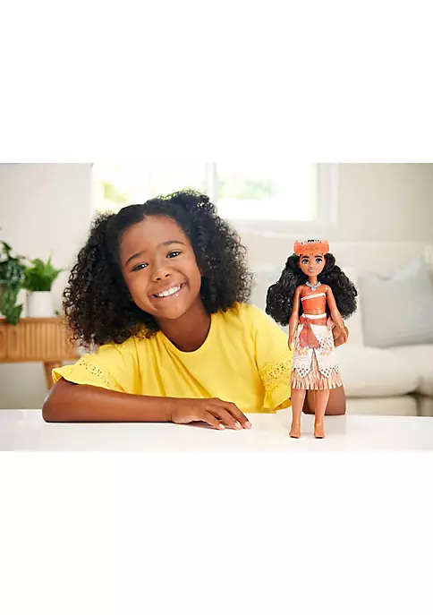 Meet this Moana doll, inspired by the driven and independent heroine from the popular Disney movie! This posable fashion doll is shown in a two-piece outfit and accessories that include a headband and necklace. In her signature look from the movie, this Moana doll is ready for any adventure! Doll cannot stand alone. Colors and decorations may vary.