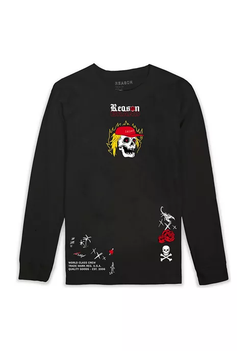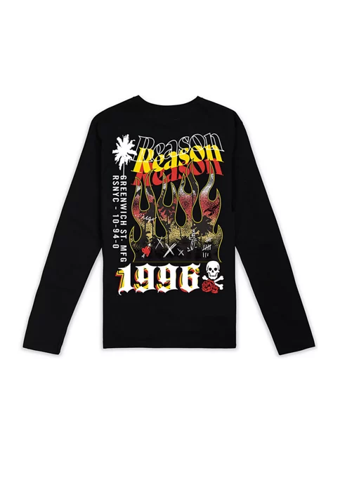 Iconic Reason Clothing shows its branding on this bold long sleeve graphic T-shirt.