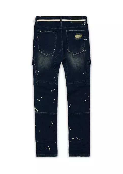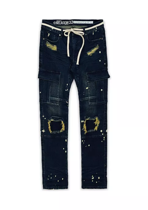 These intentionally distressed jeans from Reason Clothing feature a paint splatter design and a shoelace belt.